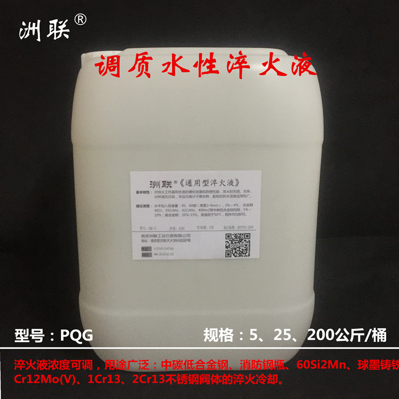 調質淬火液PQG為烯類聚合物,供應態(tài)為微黃粘稠透明液體。介質穩(wěn)定,濃度易測易控,隨淬火介質濃度不同,能夠得到不同的淬火冷卻速度,從而可以根據(jù)低合金結構鋼工件的大小以及不同的調質要求,制定濃度范圍滿足熱處理工藝要求。長時間使用不老化,不變質,不發(fā)臭、而且抗泡性優(yōu)良(攪拌基本無泡沫)。殘留在工件表面的高分子在300℃以上回火時,會分解為碳、氮、氫,對環(huán)境無污染。優(yōu)良的防腐、防銹性能、淬火時無煙氣、無刺激氣味、不燃燒、無火災危險,生產(chǎn)環(huán)境清潔。