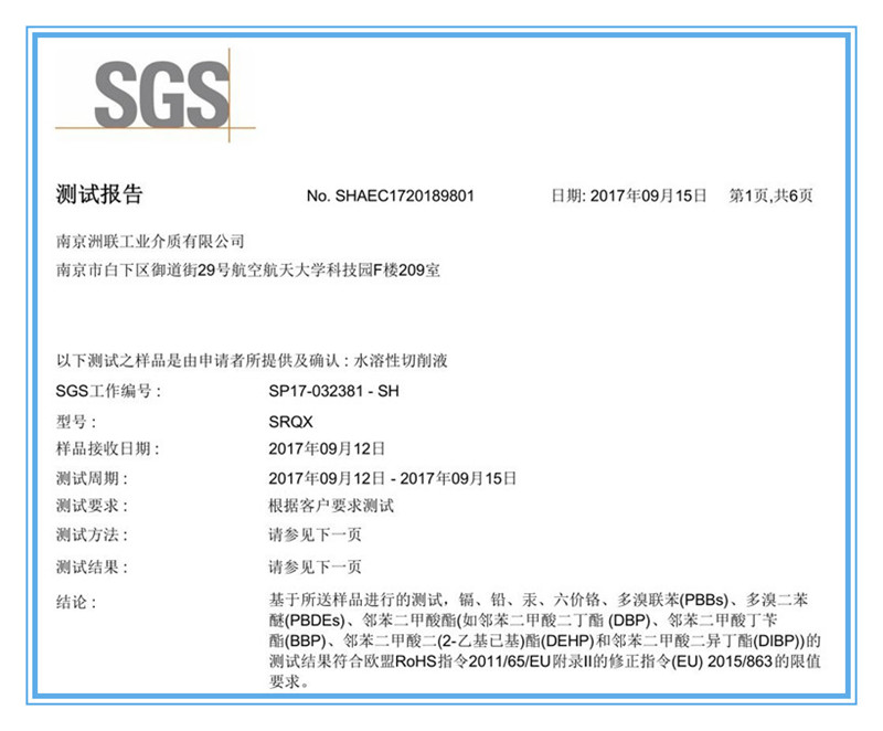 SRQX-1:外觀呈無色透明液體,非乳化液。加入水中清澈透明。比重:1.02±0.04;PH值弱堿性: 7.5~8.5;